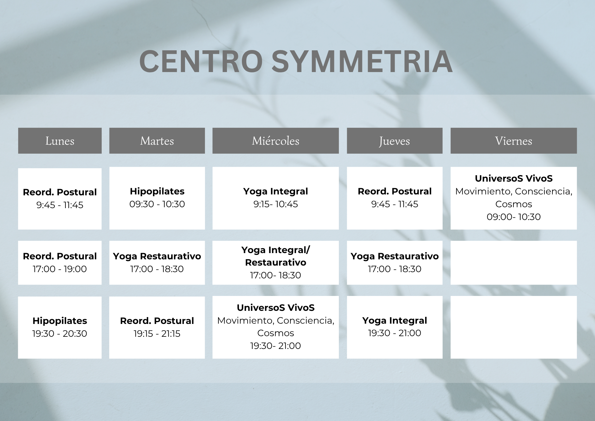 Reordenación Postural, Osteopatía Craneosacral Biodinámica, Somátic Experiencing, Yoga Integral , Yoga Restaurativo, Hipopilates